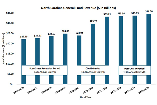 This resource provides select information on the State’s budget, economy, and taxes. The handouts included here are intended to provide general information and answer many frequently asked questions in an accessible format. For additional questions, please contact our office by phone (919-733-4910) or email.